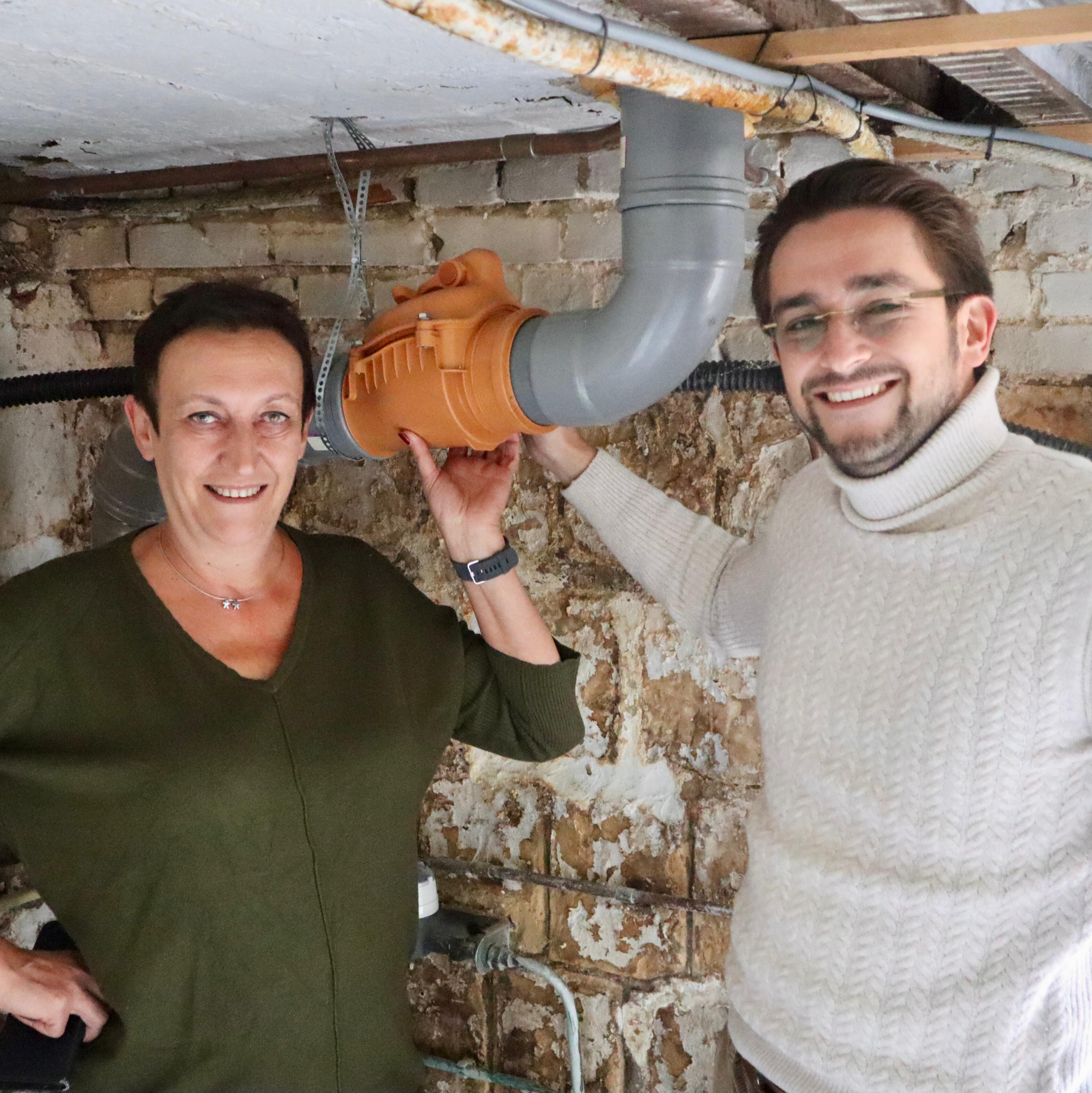 In de kelder zijn verschillende maatregelen genomen. De rioleringsbuizen zijn hoger geplaatst, zodat water uit het riool minder makkelijk terugstroomt. Ook zijn er terugslagkleppen aangebracht, die voorkomen dat rioolwater terug de wc of keuken inloopt.